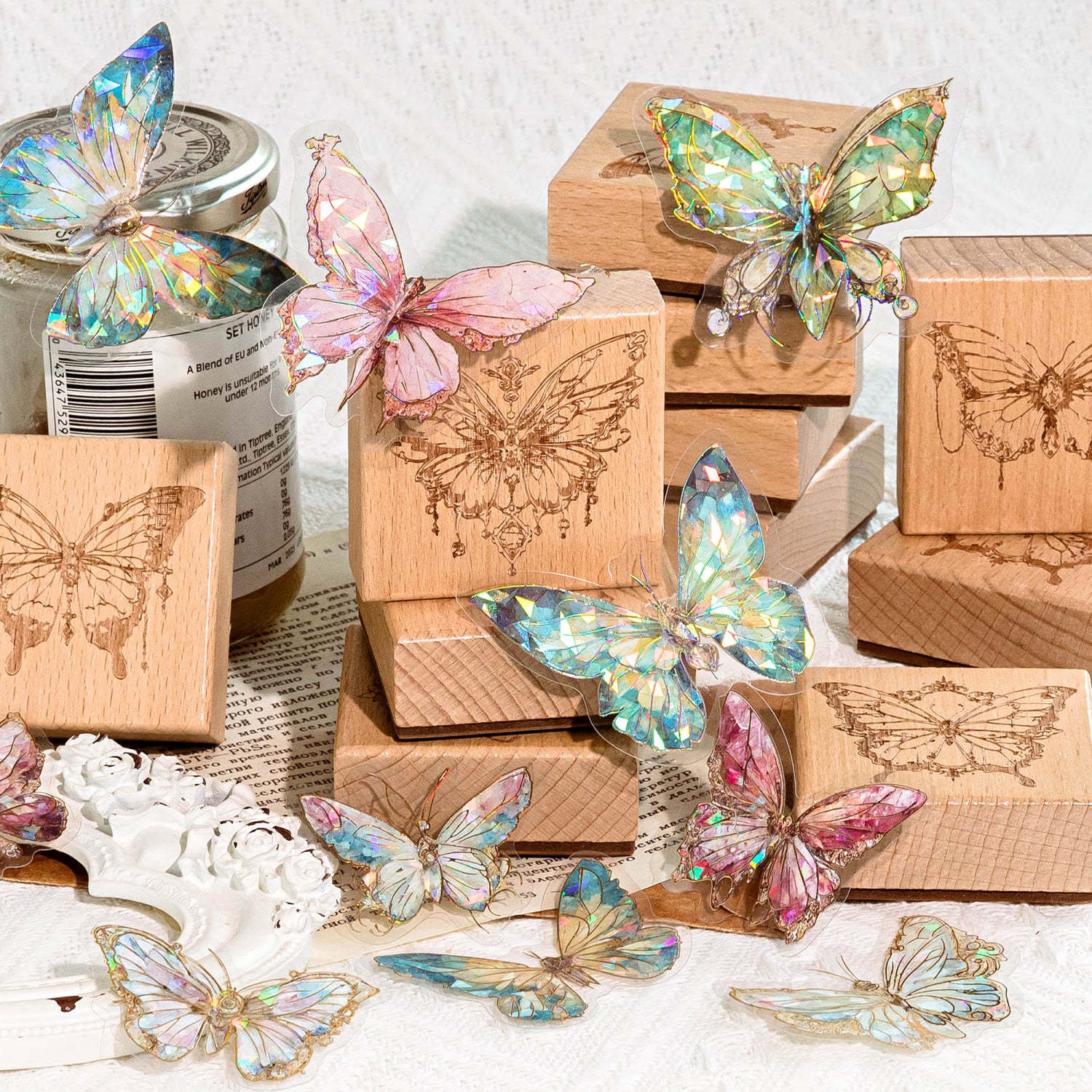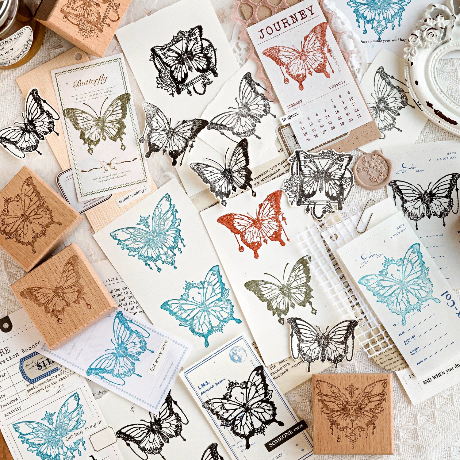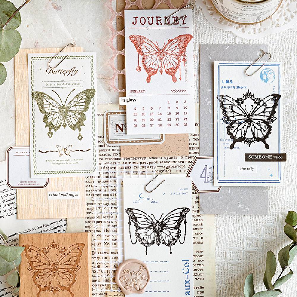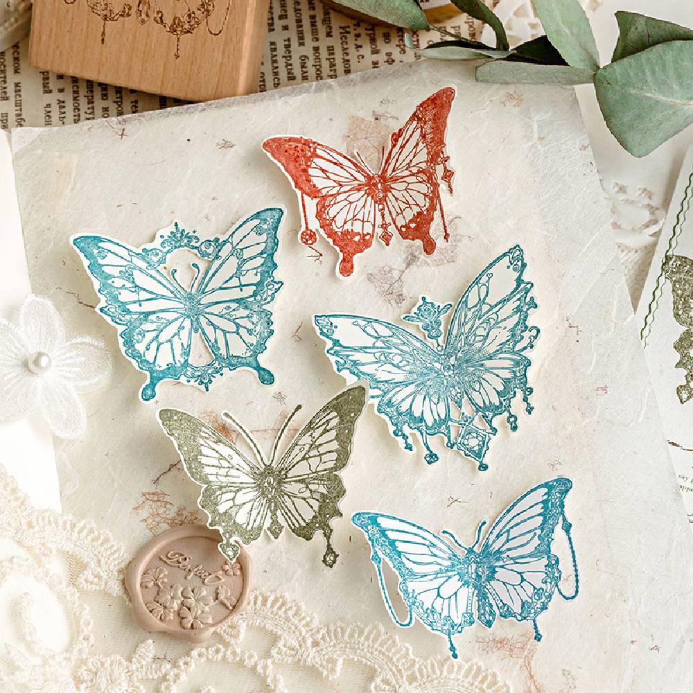 Perfect for card-making, journaling, scrapbooking, and more, these stamps are versatile and timeless. The compact makes them easy to store and use, while the detailed rubber patterns deliver crisp, clear impressions every time. Whether you're creating a fairy-tale-inspired layout or adding a subtle touch of elegance to your projects, these butterfly stamps are your gateway to a world of creativity.
