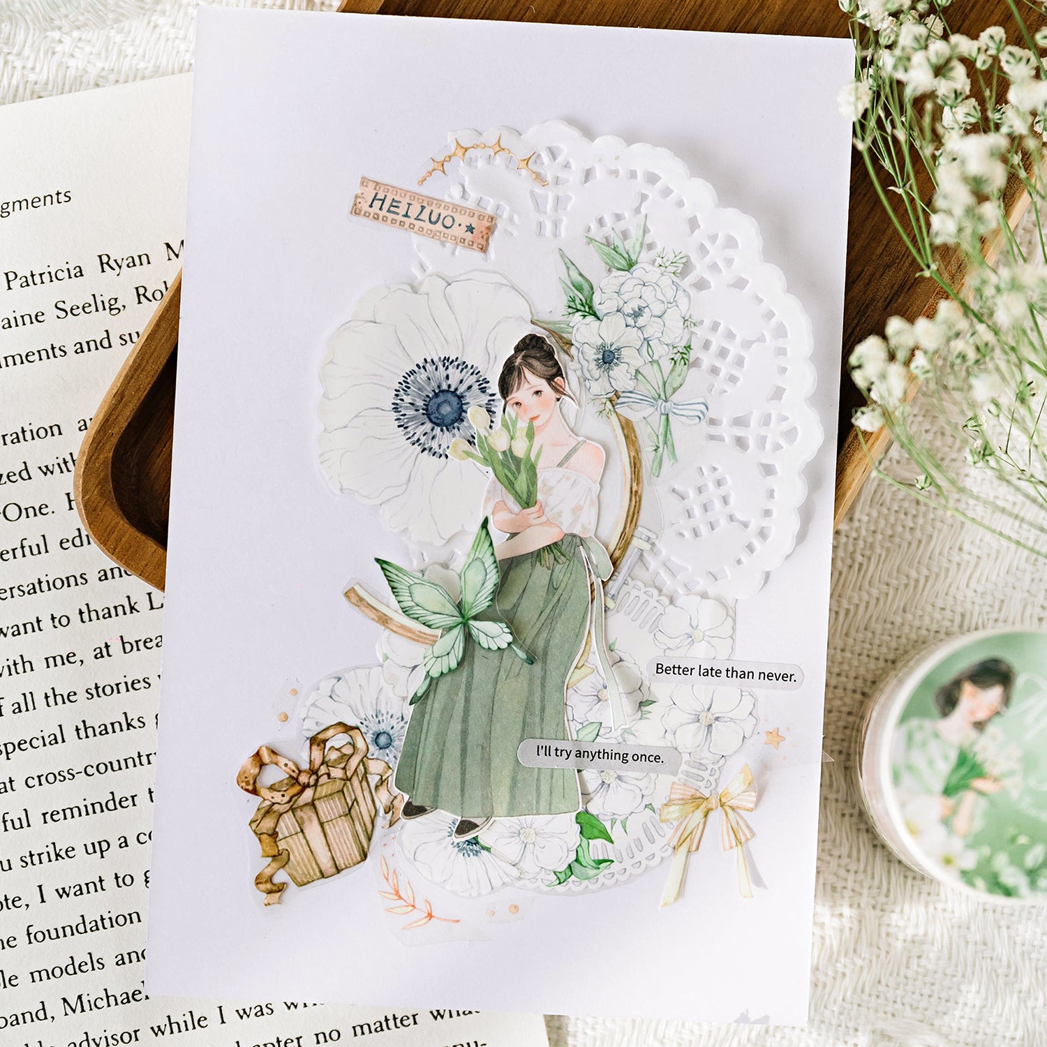 Each roll features a different girl-with-flowers motif for endless creativity