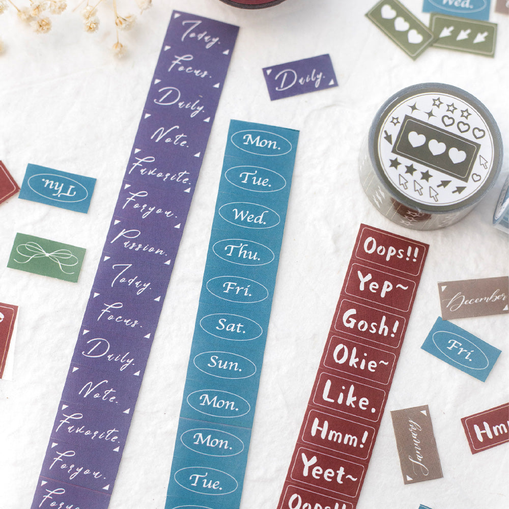 Made from high-quality materials, these paper tapes are easy to tear, write on, and reposition, making them ideal for all your planning needs. With a variety of icons and text, you can mix and match to create personalized layouts that reflect your style and mood.