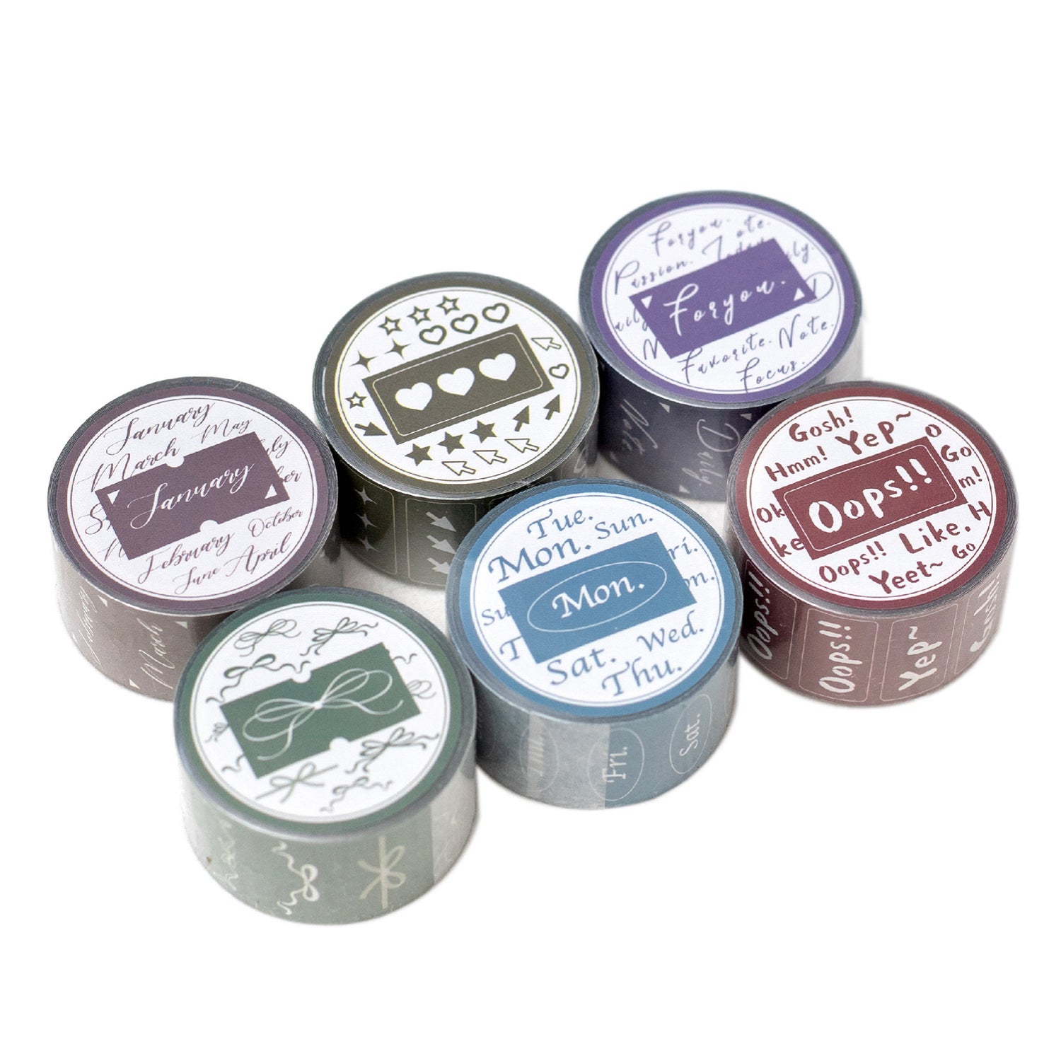 Stay organized and add a playful touch to your planning with the 1 Roll Today's Mood Paper Tape. This versatile set includes 6 rolls of beautifully designed paper tape, each featuring unique themes like months, days of the week, moods, gifts, and more. Whether you're tracking your schedule, journaling your feelings, or decorating your planner, these tapes are the perfect way to express yourself and keep things fun and functional.