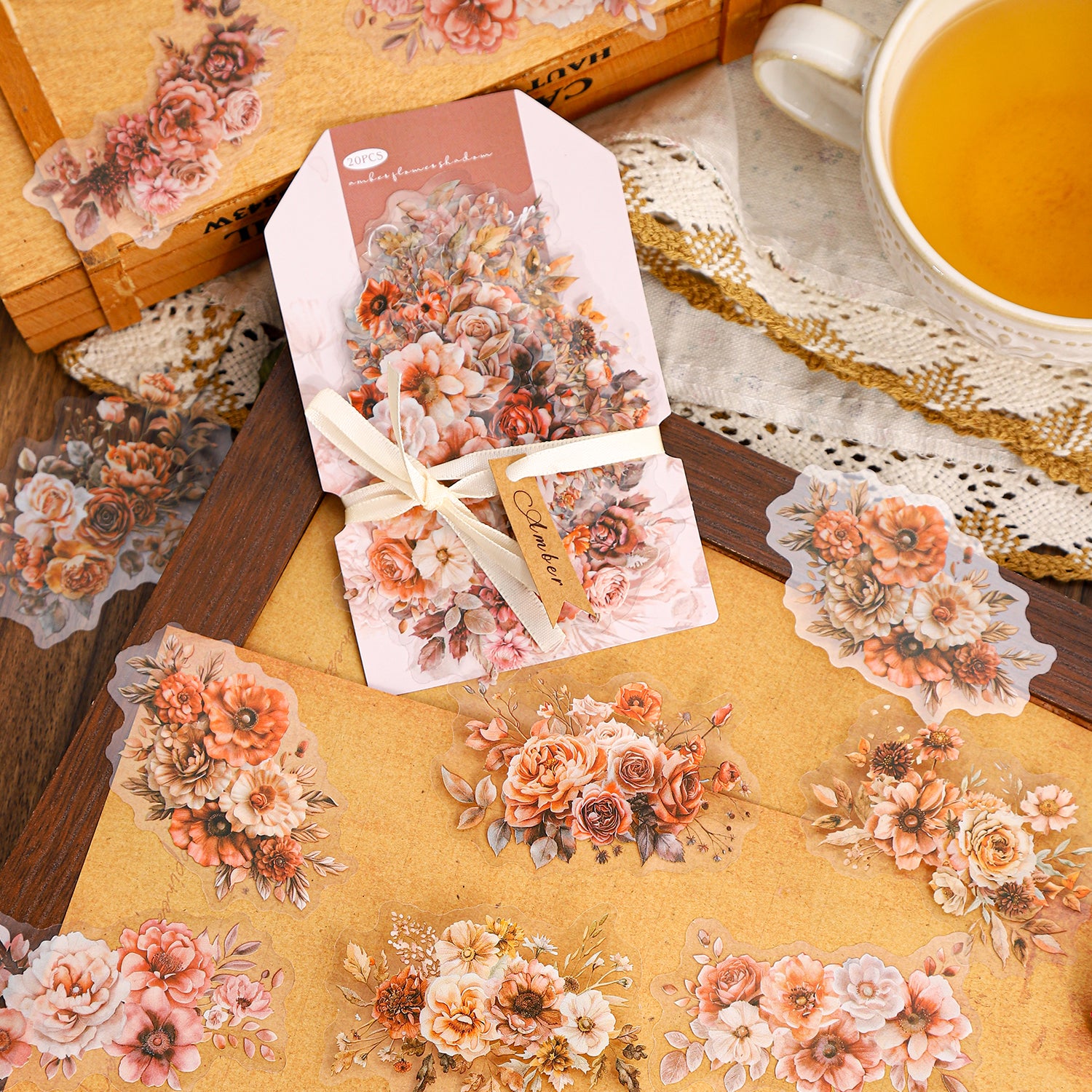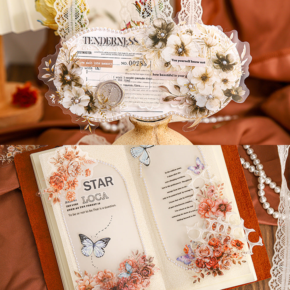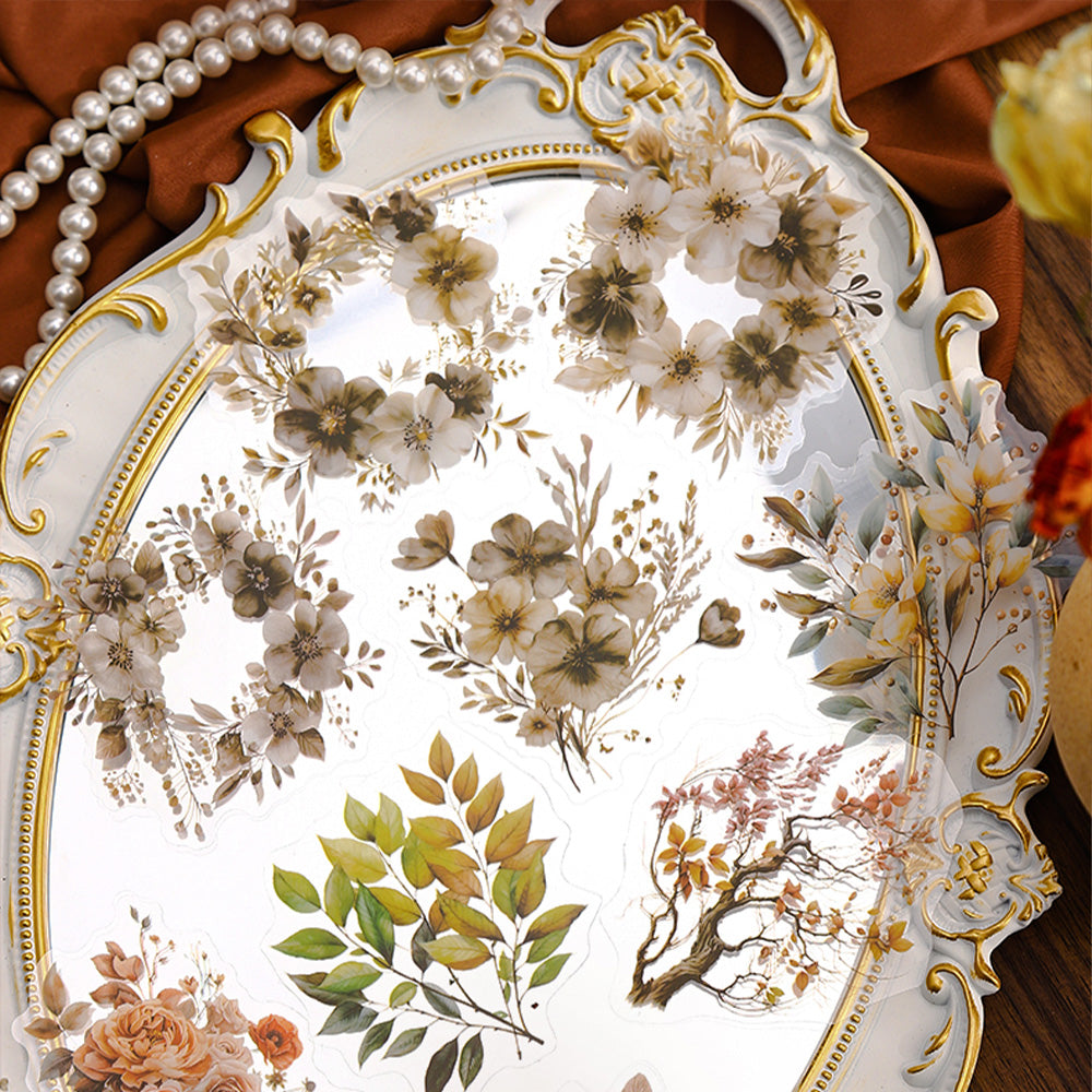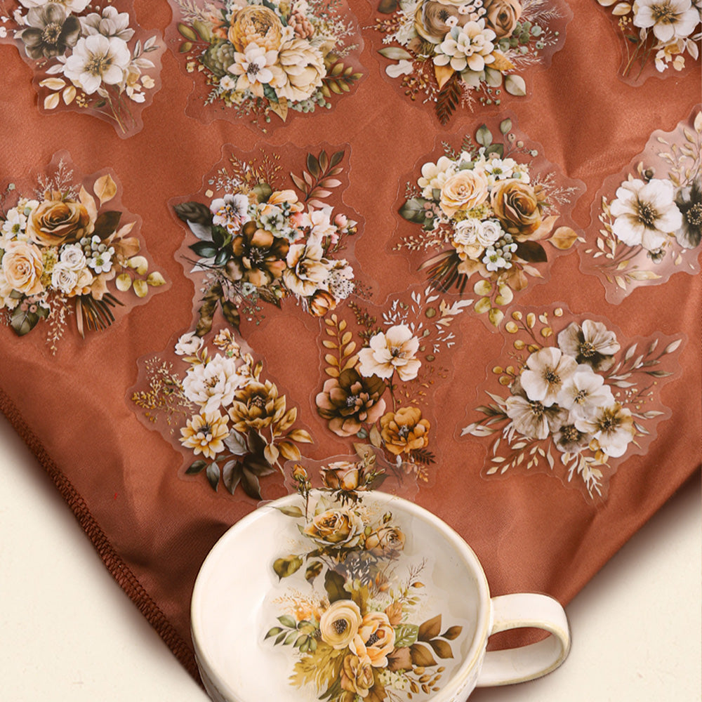 Each sticker features delicate amber-toned flowers with soft shadow details, creating a dreamy, vintage-inspired look that’s both timeless and oh-so-romantic. Whether you’re crafting a love letter, decorating a memory-filled scrapbook, or simply adding a floral flourish to your daily planner, these stickers are your go-to for a touch of natural beauty.