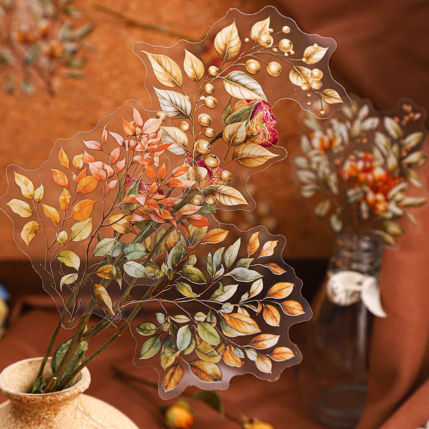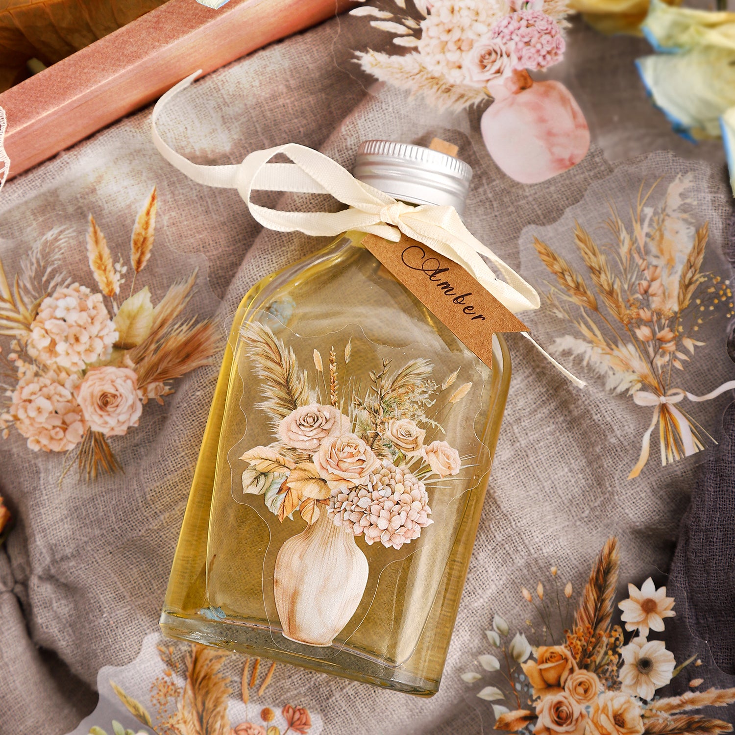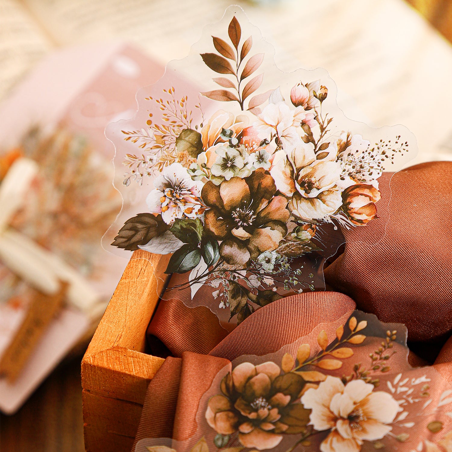 Each sticker features delicate amber-toned flowers with soft shadow details, creating a dreamy, vintage-inspired look that’s both timeless and oh-so-romantic. Whether you’re crafting a love letter, decorating a memory-filled scrapbook, or simply adding a floral flourish to your daily planner, these stickers are your go-to for a touch of natural beauty.