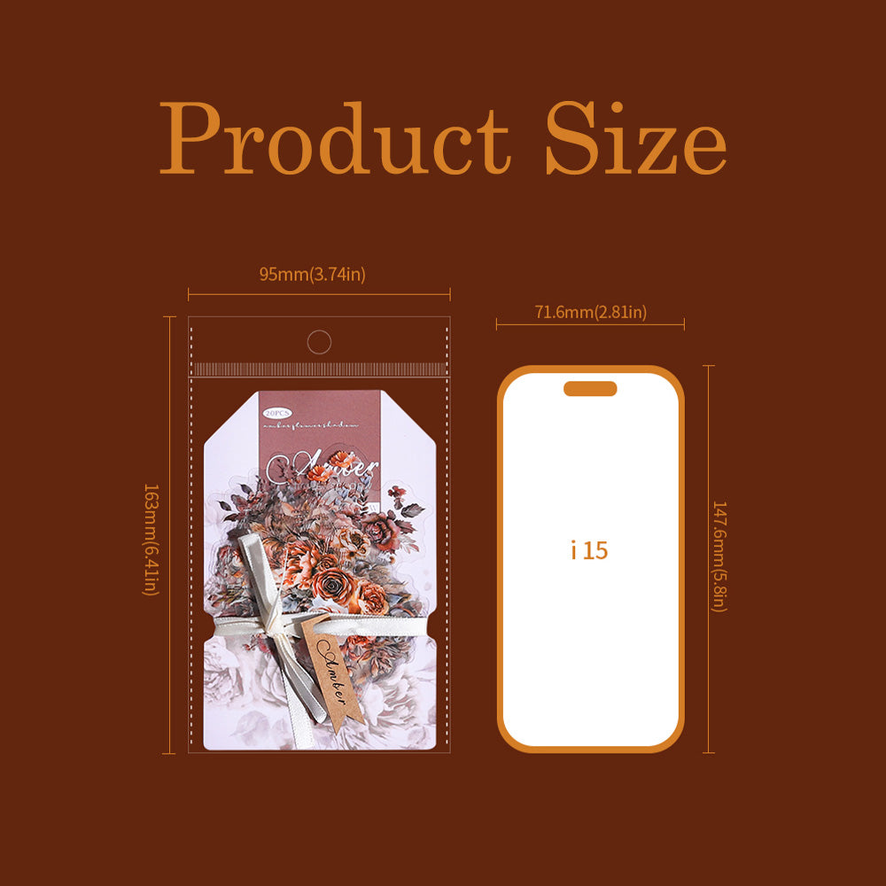 Step into a world of blooming romance with this enchanting 20 Pcs Amber Flower Shadow Sticker Set! Perfect for adding a touch of floral elegance to your journals, scrapbooks, planners, and more, these stickers are here to make your creative projects blossom with charm.