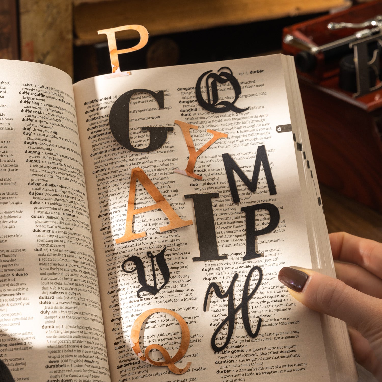 Unleash your creativity with the 26 Pcs English Dictionary Paper Sticker Set! This unique collection features 26 oversized English alphabet stickers, each one designed in a distinct and stylish font inspired by vintage dictionary typography. Perfect for adding a touch of literary charm to your journals, scrapbooks, planners, and more, these paper stickers are a must-have for anyone who loves the artistry of typography and the elegance of classic design.