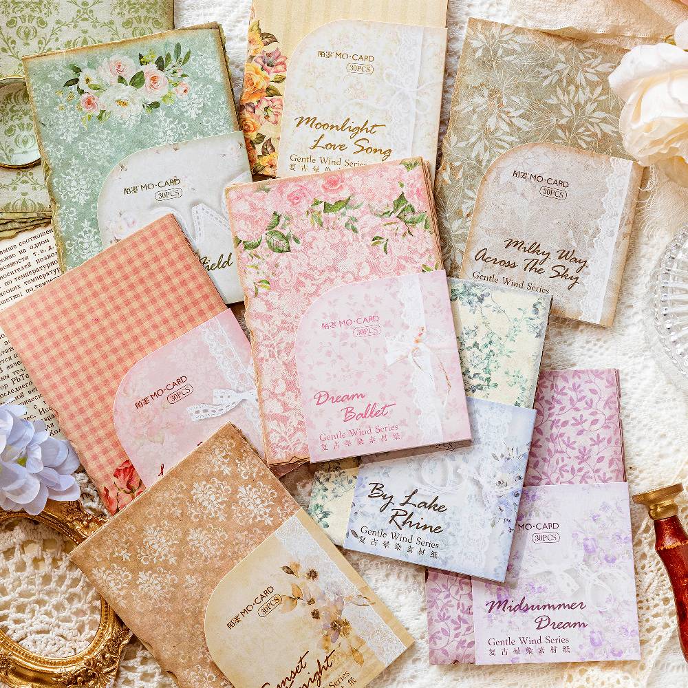 Step into a world of timeless beauty with the 30 Sheets Gentle Flower Wind Material Paper Set, where vintage aesthetics meet modern craftsmanship. This exquisite collection captures the delicate charm of botanical illustrations, offering eight distinct floral patterns that evoke the romance of a bygone era. Each design has been carefully selected to create harmonious combinations, perfect for building cohesive journal spreads and memory projects.