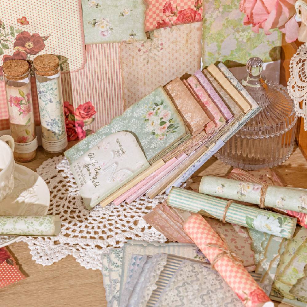 From dainty wildflower sprigs to elegant rose bouquets, these papers bring the gentle beauty of nature to your creative workspace. The soft, muted color palette - featuring blush pinks, sage greens, powder blues, and warm creams - creates an instant vintage vibe that complements both classic and contemporary journaling styles. Whether you're crafting a shabby chic album or a minimalist bullet journal, these versatile papers add just the right touch of floral elegance.
