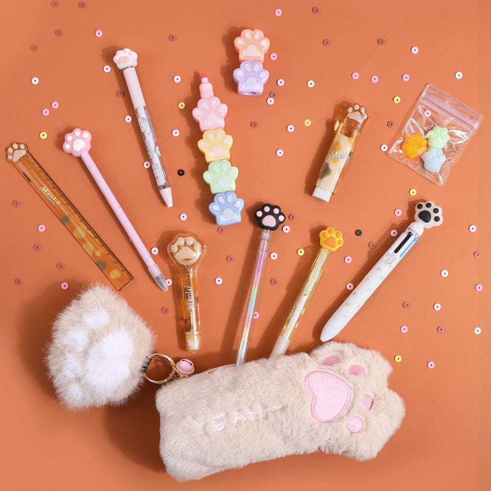The Cat Paw Pencil Case adds a touch of style while conveniently organizing your essentials, and the inclusion of fun, cat-themed products such as the Lucky Cat's Paw Erasable Gel Pen and Cat Paw Rainbow Pen adds a unique, interactive element to your stationery collection. Whether you’re jotting down ideas, marking important notes, or simply indulging in a moment of relaxation, this versatile set has everything you need. Perfect for students, professionals, or anyone who loves creative stationery, it’s beautifully packaged and makes a thoughtful gift. Elevate your workspace and add a delightful twist to your stationery collection with this one-of-a-kind Kitty Paws Stationery Set!