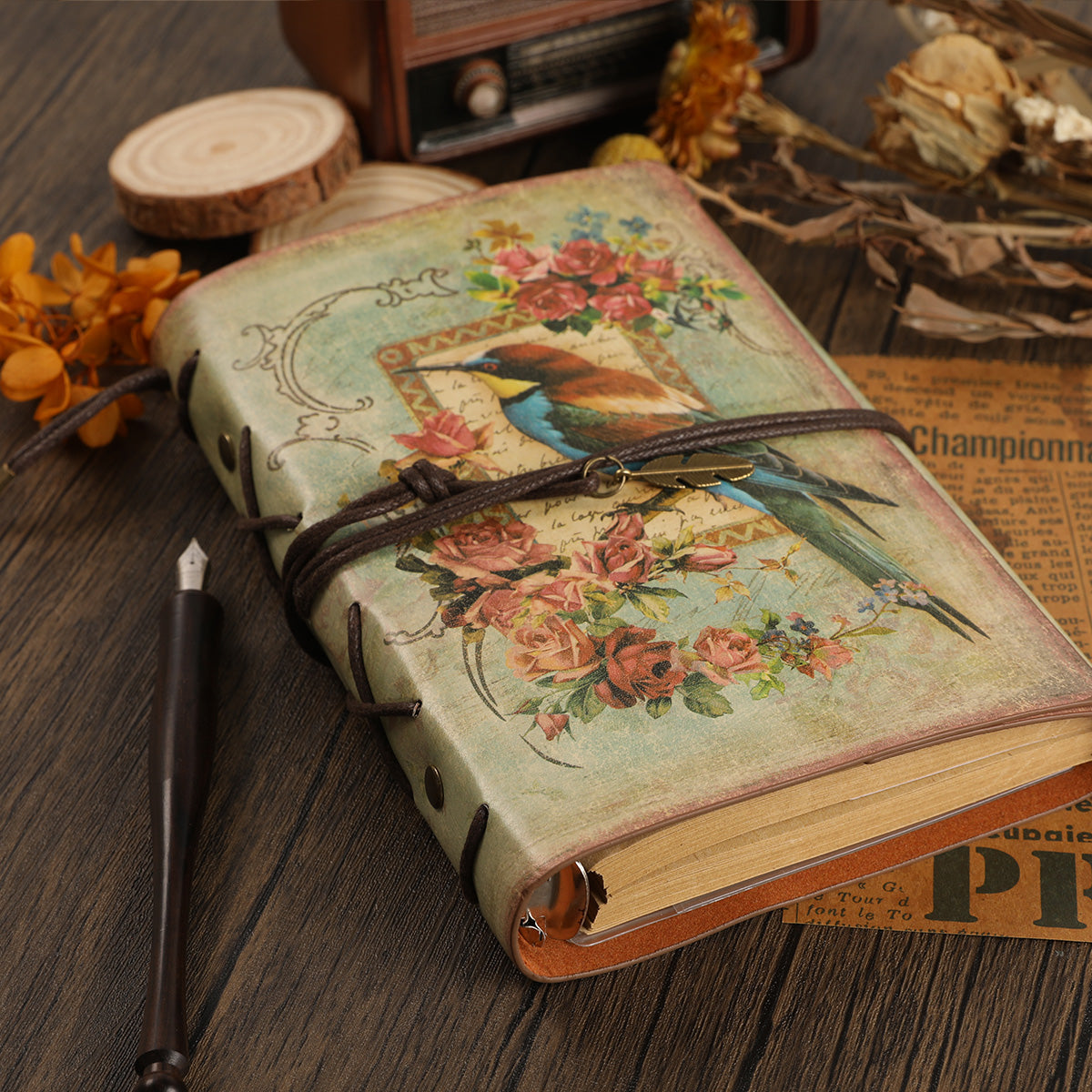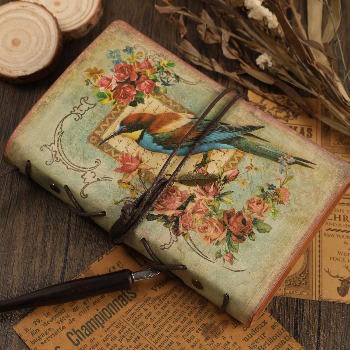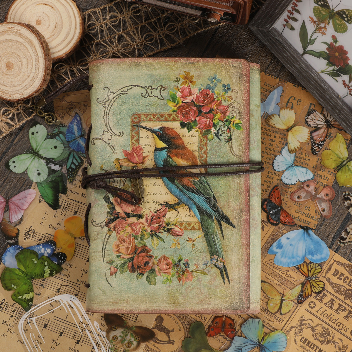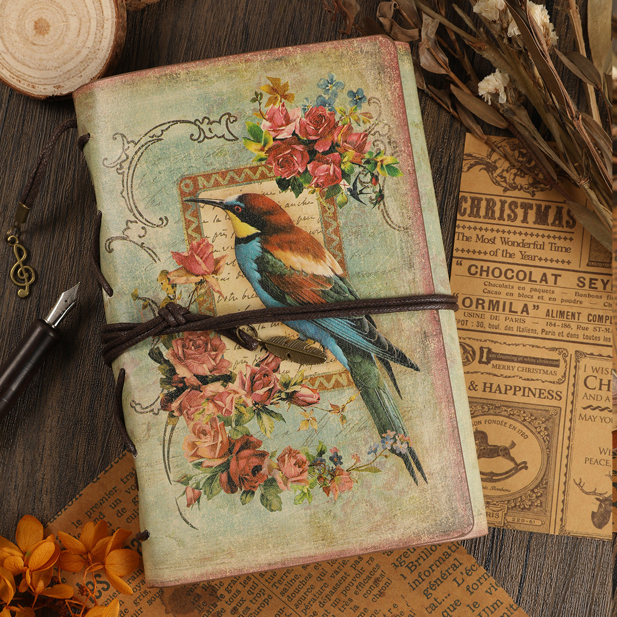 Vintage Flowers & Bird Kraft Paper Refillable Bullet Journal