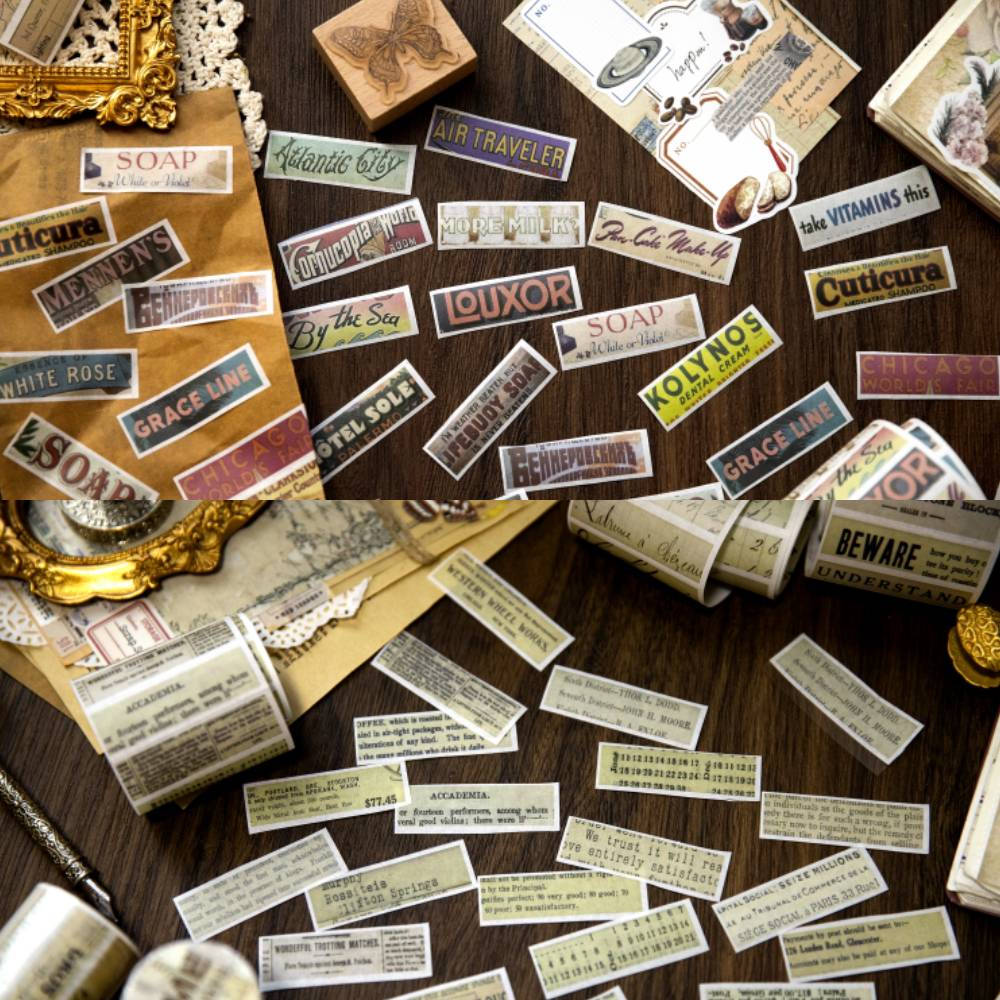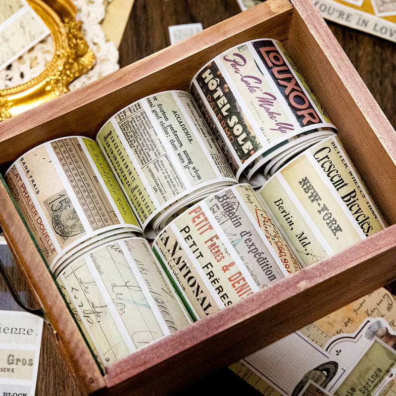 Step back in time with the 1 Roll Time Note Paper Sticker Tape, a nostalgic collection of 6 uniquely designed tapes that bring the vintage charm of old newspapers, receipt fragments, and handwritten notes to your journaling and crafting projects. Each roll features intricate, retro-inspired designs that add a touch of history and personality to your pages.