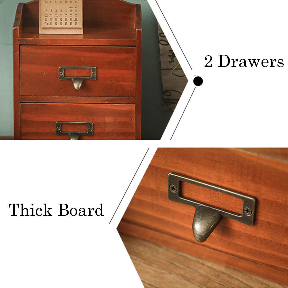 Sublimez votre espace de travail avec la boîte de rangement rétro en bois à 2 tiroirs, un mélange saisissant de fonctionnalité et d'élégance vintage. Cette boîte en bois magnifiquement conçue est dotée de deux tiroirs spacieux avec d'élégantes poignées en métal, idéales pour ranger vos essentiels de loisirs créatifs, votre papeterie ou vos petits trésors. Son plateau supérieur offre une élégante surface pour exposer des objets décoratifs, des photos ou des plantes, ajoutant une touche personnelle à votre bureau ou à votre espace de loisirs créatifs.