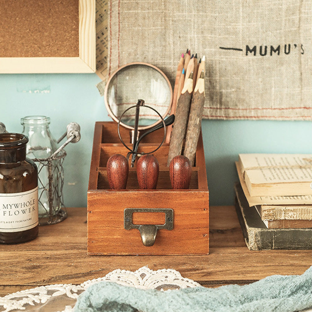 Boîte de rangement rétro en bois à 3 compartiments