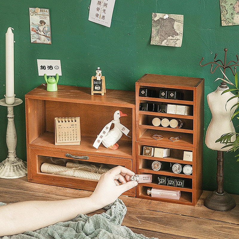 Entrez dans un monde de charme intemporel avec le Boîte de rangement rétro en bois à 4 compartiments . Cette boîte en bois magnifiquement conçue comporte quatre compartiments inclinés, conçus pour ranger et présenter parfaitement vos rubans washi, vos petits outils de bricolage et autres objets essentiels. Son design incliné permet non seulement de ranger vos objets, mais aussi de les rendre facilement accessibles, vous permettant ainsi de vous concentrer sur votre créativité sans vous encombrer.