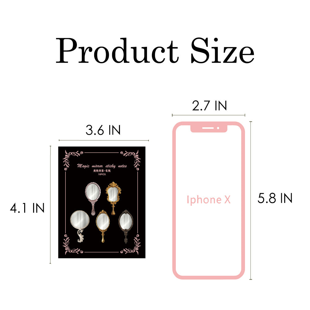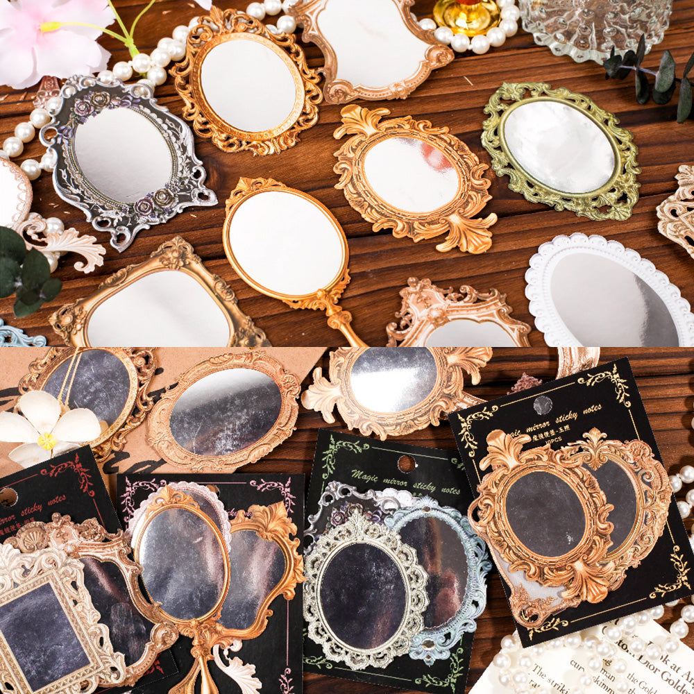 Each die-cut note features an intricately designed Baroque-style mirror frame, complete with a reflective silver cardstock center that truly mimics the look of a real mirror. Perfect for adding a touch of vintage style to your journals, scrapbooks, planners, and more, these notes are a must-have for anyone who loves timeless beauty and artistic details.