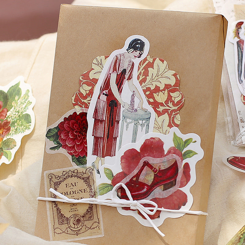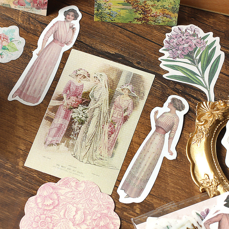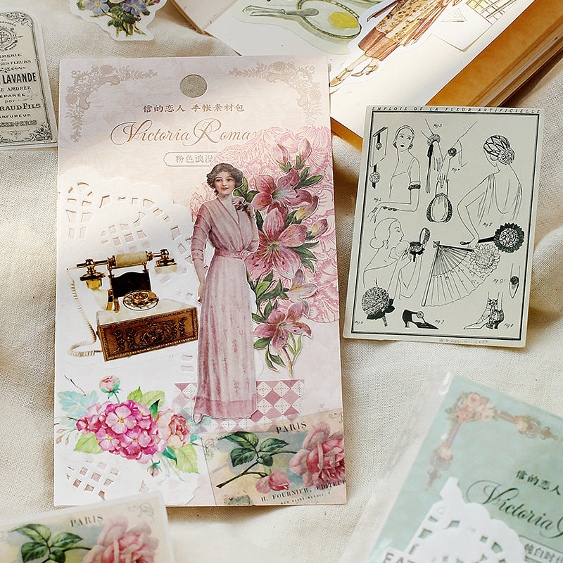30 Pcs Victorian Lady Sticker & Material Paper Set