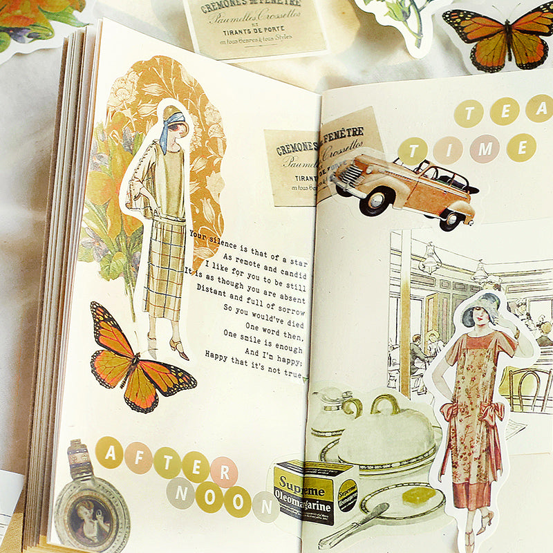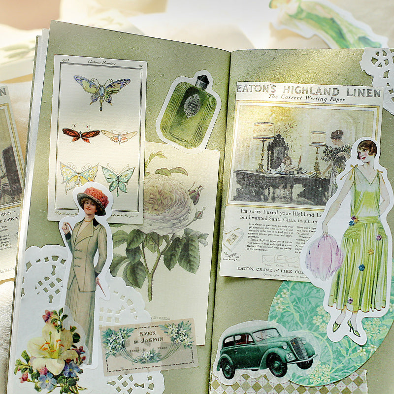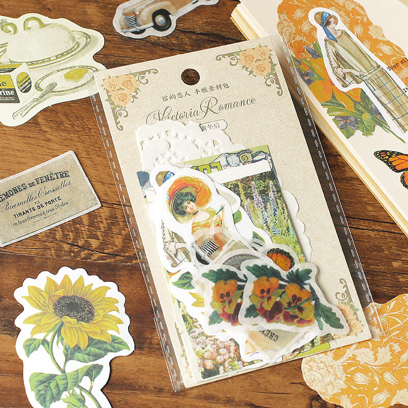 Infuse your creative projects with the charm of a bygone era using this elegant collection of vintage stickers and material papers. Designed to bring warmth and nostalgia to your scrapbooks, journals, cards, and collages, this set offers a touch of Victorian sophistication to every page.